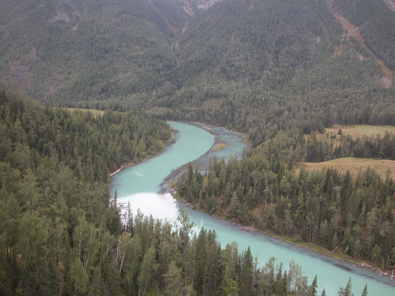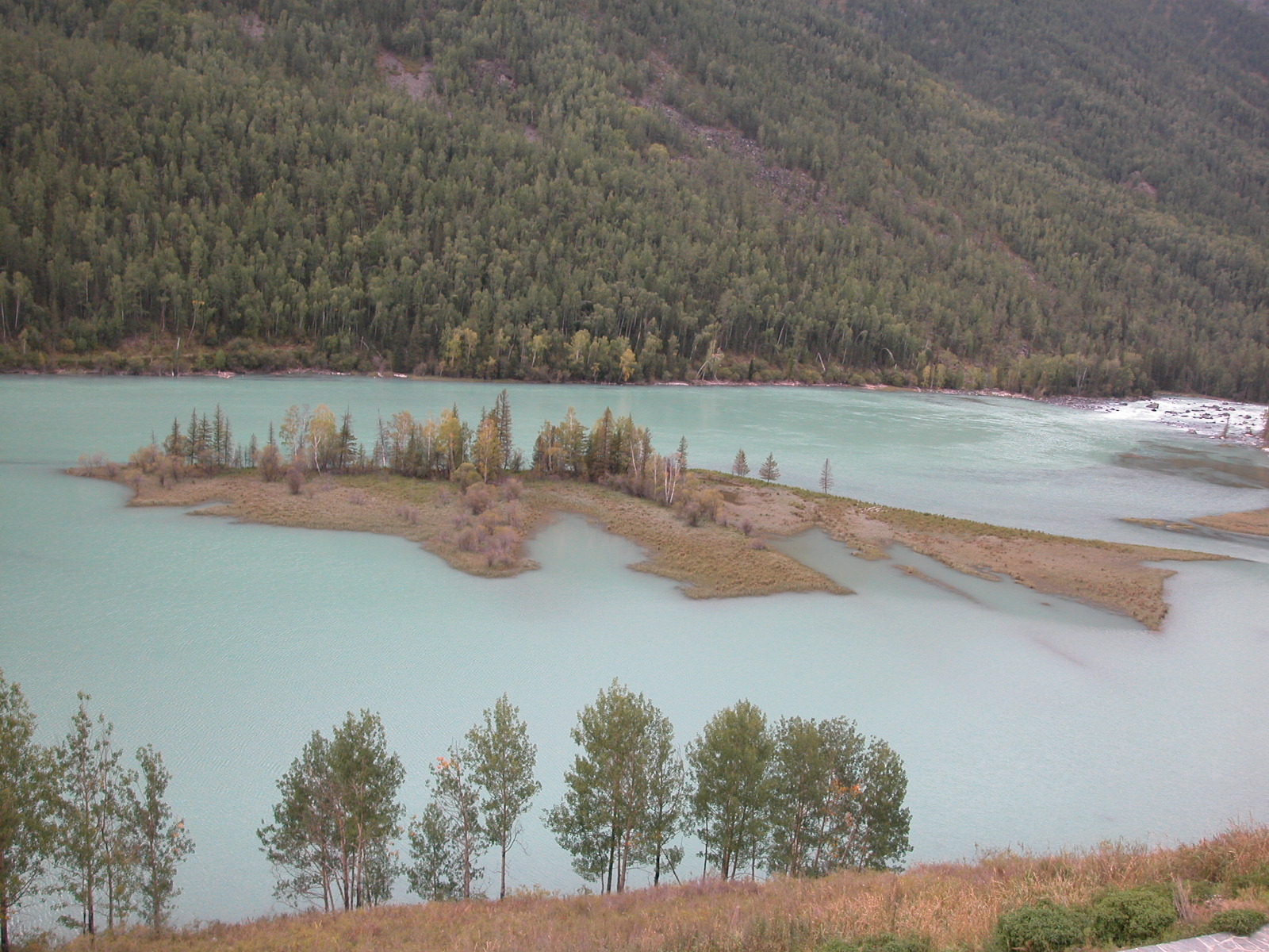 如各位所说,喀那斯湖溶解了较多的矿物质,湖水呈现翠玉色。
