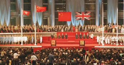 1997年7月1日零点,万人聚集北京天安门广场欢呼香港回归祖国
