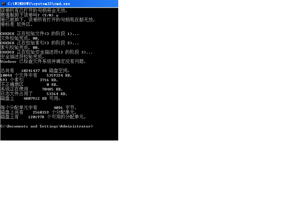 【零下二度的贴子】 运行里输入CMD然后回车然后输入chkdsk /f D: ........................... |