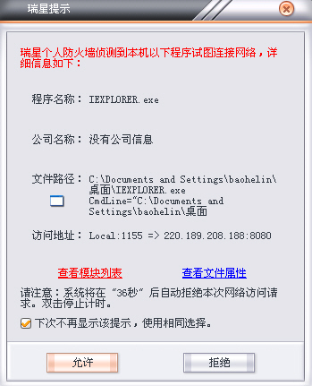 这个iexplorer.exe并非木马的主体文件。解压到桌面后,它只能在原位运行。上来就要访问网络(图)。