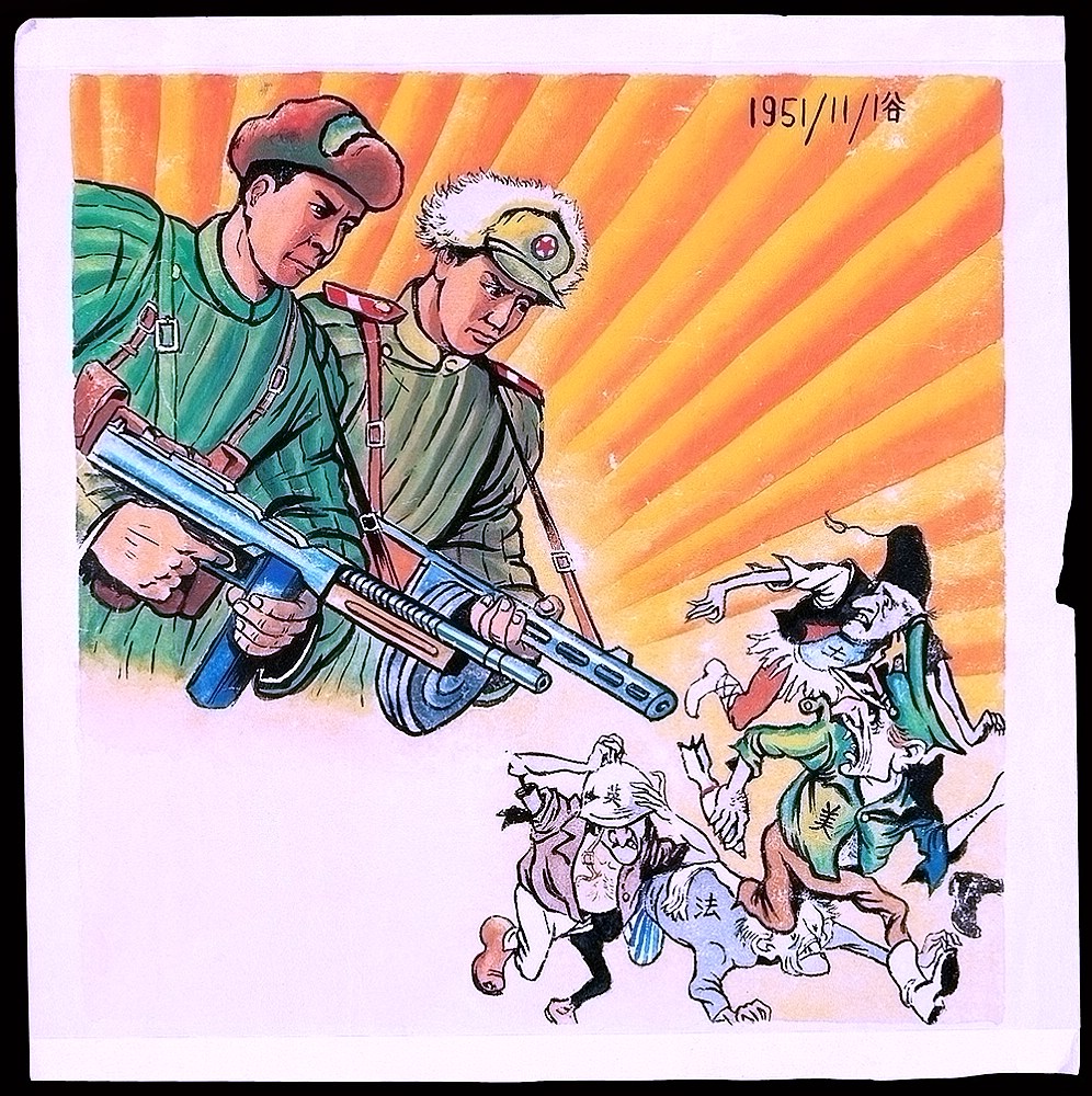 抗美援朝水彩漫画宣传画