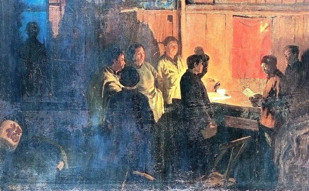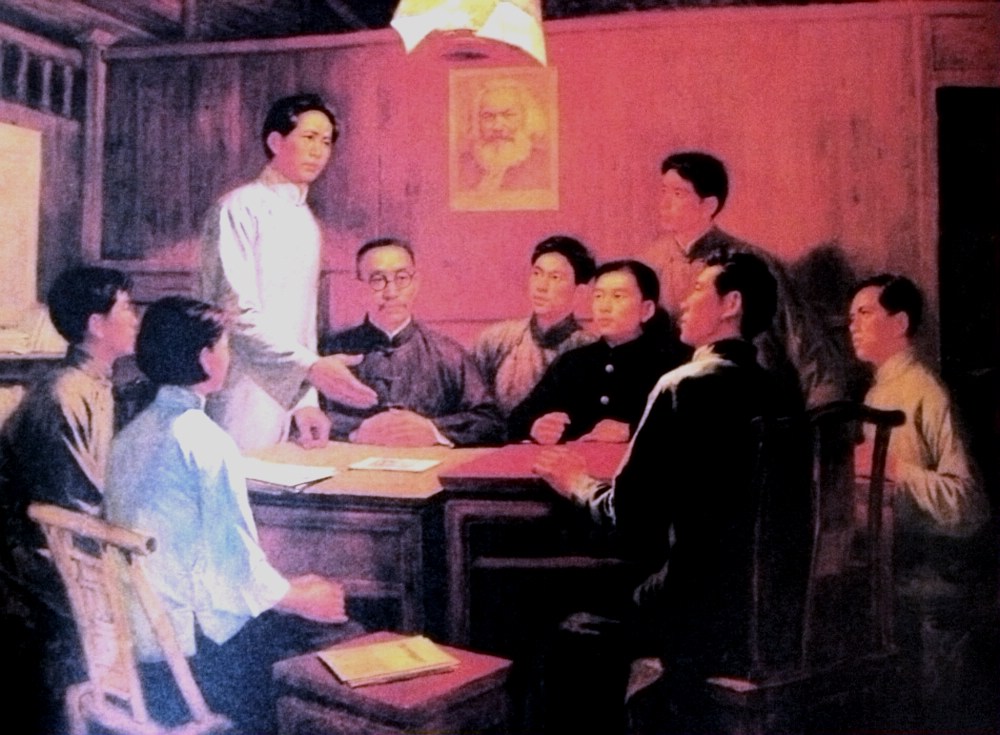 油画《湖南共产主义小组》。作者:周树桥