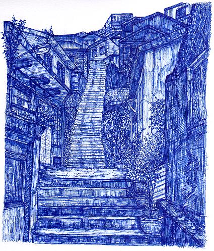 我第一次见到用圆珠笔画出来的风景画,与大家分享一下。