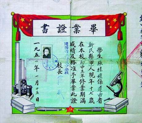 1951年,辽西省立新民中学颁发的初中毕业证书