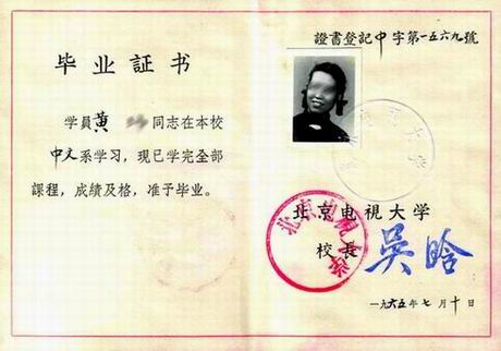 1965年7月,北京电视大学毕业证正文。钢印红印一应俱全,可见它的严肃性与正规
