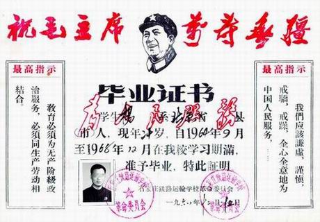 1968年12月,石家庄铁路运输学校的毕业证书。革命委员会签发。