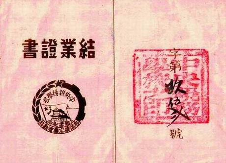 结业证书正文。这所培育国家公务员的学校“忠诚、朴实、廉洁、勤能”的校训在今天依然具有社会意义。