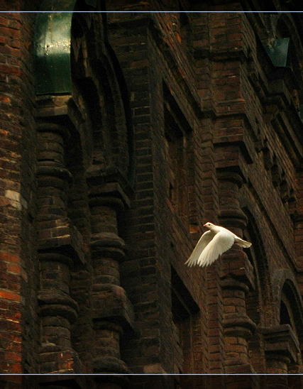 第一张,古色的建筑,间杂鸽白.并着眼一只的翔.