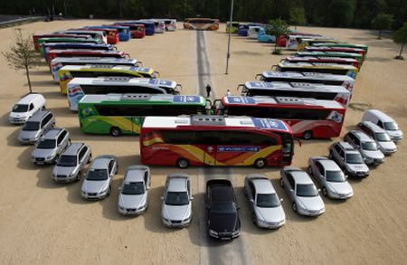 世界杯少不了汽车的秀机会,此次德国队大巴图案设计由国际足联、世界杯组委会、德国足协及国家队共同决定,波浪形主图案寓意世界杯期间德国国内甚至全世界高涨的足球热情,只在大巴最前面和最后面才能看到国旗的小图案,美国是唯一没有国旗图案的国家,其它32强大巴图片如下