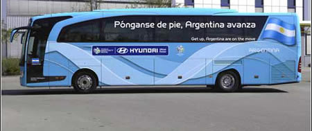 阿根廷队大巴,口号是get up,argentina are on the move(起来,阿根廷在行动)