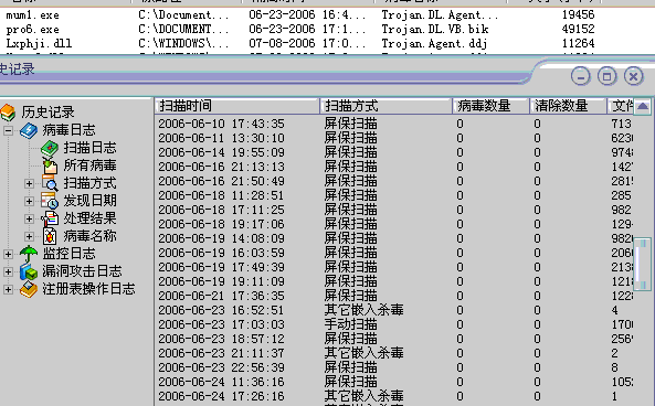 在病毒隔离区里还能看见,可是瑞星就是没记录