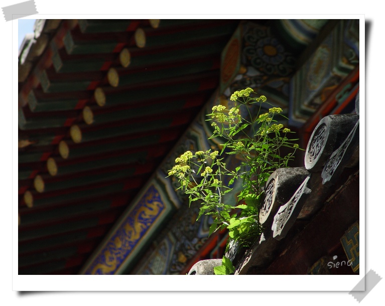多么名符其实啊,黄色竹竿上,有一道翠绿,每节交错,在“太后院”拍的;可惜我不知道也没拍到“玉镶金”,那个应该在行宫院.........以后一定补上!