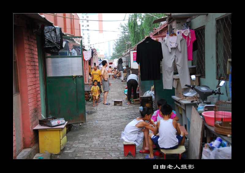 高楼大厦下的民工屋,对面两排,住着20多户人家