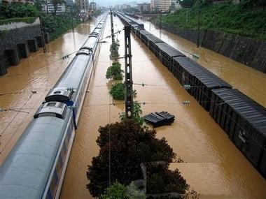 1、这是洪灾中最经典的场景。京广线,这条中国铁路的大动脉,在洪水中被迫停顿下来。