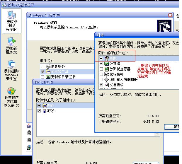 在开始——设置——控制面板——添加删除程序-——再到“添加/删除Windows组件”——在下面的选项中把“附件和工具”前面打上钩。或选中点“详细信息”——在“附件和组件的子组件”选项下选“附件”打上钩。再选中点——“详细信息”会出现“画图”等选项。。。全打钩就可以了,或你重新安装下“附件和工具”点下一步。。安装完就可以了。。