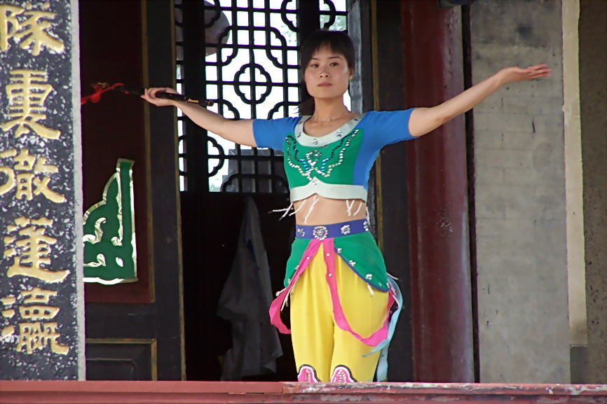 天后宫对面的舞箫表演
