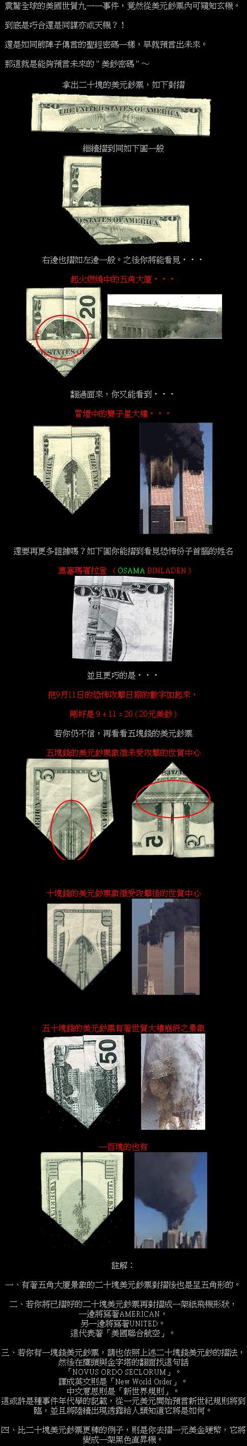 震惊全球的美国世贸九一一事件,竟然从美元钞票内可窥知玄机!!