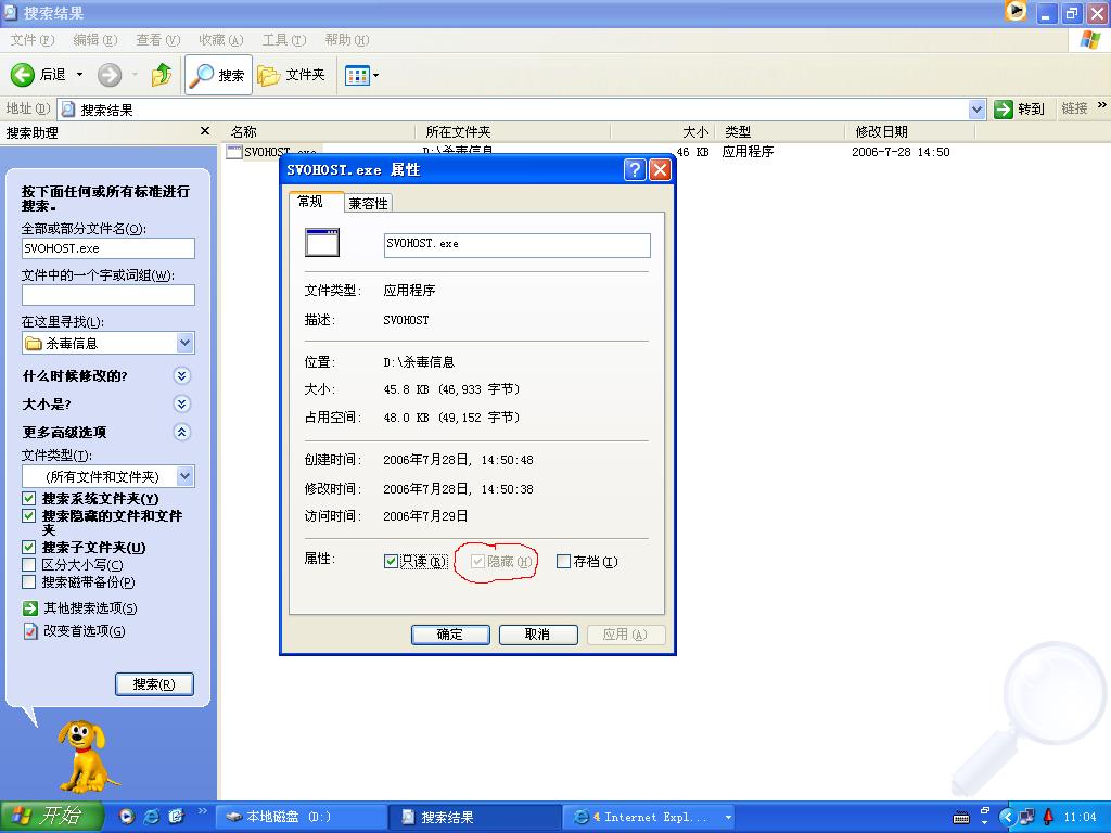 SVOHOST.exe的属性,我在“瑞星有紧急问题”一帖中已提出。