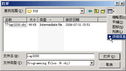 操作软件时,在“文件/打开”时如何设置总是“详细信息”的方式?