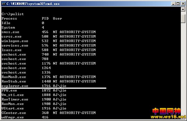 pulist:一款进程PID查看器,可以在命令提示符下查看当前系统进程的PID值。