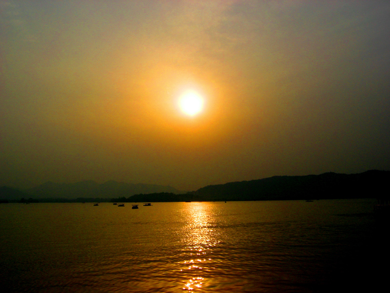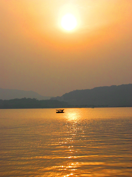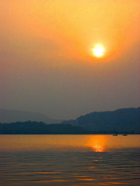 夕阳下的西湖显得更美丽!