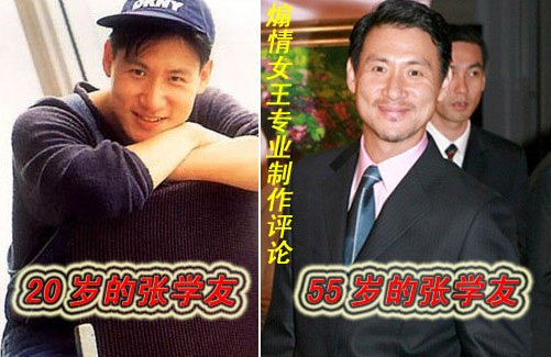 张学友:80年代的电影小子,因为歌唱的好,所以转行唱起了情歌,迷倒了中国众多青少年男女,张学友虽然不是很英俊的男人,但是年轻时的他,到有一种让人不得不亲眯的性感冲动,可惜啊,岁月已过,55岁的学友皱纹已布满脸庞,给人一眼就有一种老化的感觉。