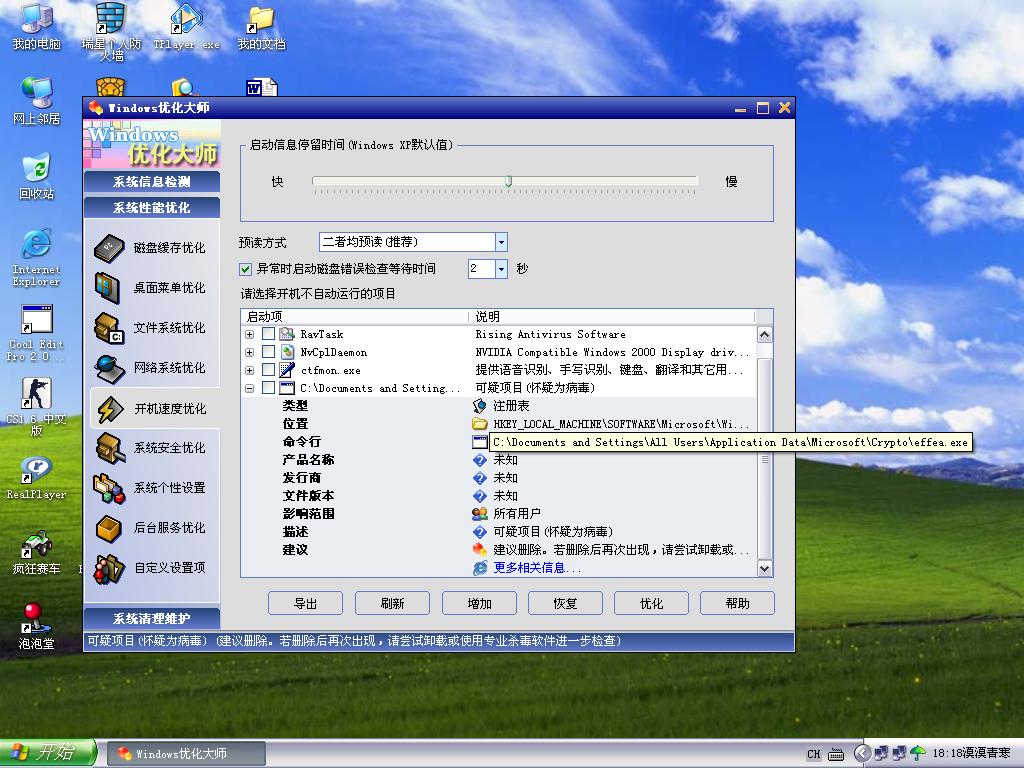 请问这是什么病毒阿,清理启动项后,下次开机就又有了......怎么办啊?