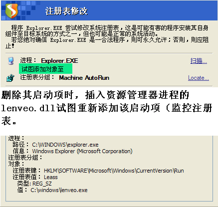 关闭explorer.exe用icesword删除lenveo.dll和lenveo.exe不行吗?
