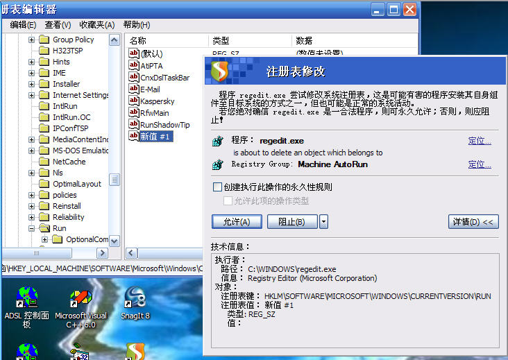 试验:用IceSword删除启动项,连SSM都觉察不出来.
