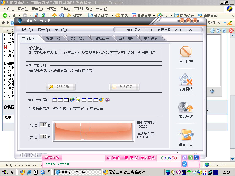 瑞星防火墙显示网络出入流量全高 满刻度,正常吗?