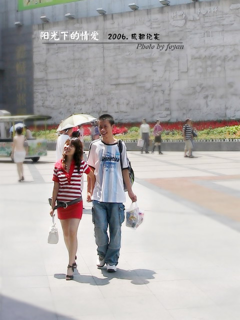 【foyan的贴子】前不久去了成都,春熙路步行街向来以美女见多,商品也是琳琅满目,价格也是贵得出奇,这里的游人宛若一道风景,走走停停,我也就在此驻足拍拍,定格下一些片断: ……………… |