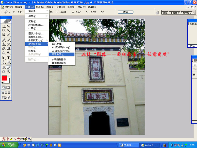 四、选择“图象——旋转画布——任意角度”
