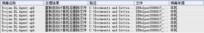 用瑞星查出的是个病毒程序:无法清除...F8进安全模式也木有效果...也找不到进程...此文件的目标地址是:C:\Documents and Settings\All Users\Application Data\Microsoft\IEHelpe 文件名:IEHelper2006817_.dll
