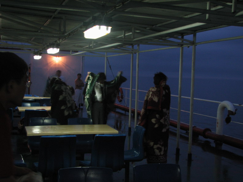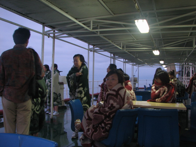 7月中旬的那几天,竟一点也没盛夏的气息。凌晨4点的海面,风大而冷,渴望海上日出的人们早早的起来了。偶是4:15起的,却发现:莫道我起早,更有早起人啊!美女们个个似西藏的喇嘛,偶穿的是短袖T恤,冻的啊就像寒风里的寒号鸟~~~~~~~