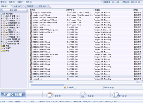 网站只能打开主页,有些内容无法打开浏览。瑞星杀毒的结果为: