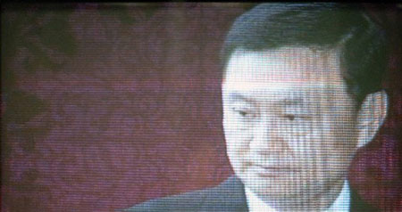 2006年9月19日 泰国总理他信宣布全国进入紧急状态的电视讲话被中途切断 9月19日晚,正在美国纽约的泰国总理他信发表电视讲话,宣布泰国全国进入紧急状态,但几分钟后,政府电视台画面被中断,他信的讲话被切换为其他节目。这是他信讲话的电视画面(9月19日摄)。