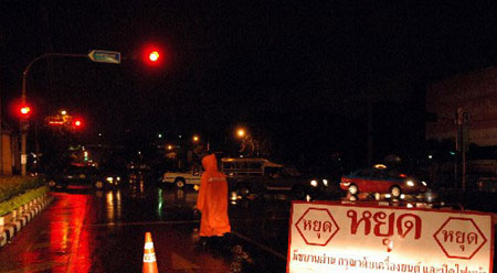 月19日,泰国军方占领总理府后,附近道路被封锁
