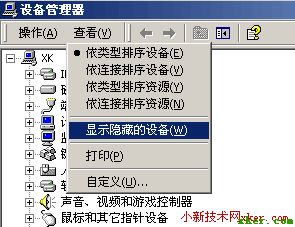 2、选择“查看”/“显示隐藏的设备”,在“非即插即用驱动程序”中选择“npkcrypt”,卸载之,可选重新启动