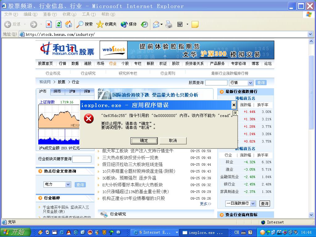 上新浪,和讯网时ie关闭