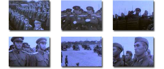 飘扬在前面的是鲜红的“八一”军旗!她带着南昌城头的弹雨,带着长征路上的风尘、带着抗日烽火的硝烟,带着百万雄师过大江的浪涛。军旗下聚集了多少优秀的中华儿女,军旗上染着多少壮士宝贵的鲜血。22年浴血奋战。终于簇拥五星红旗从天安门广场升起。50年继往开来,忠诚地护卫着共和国走过壮丽的行程。今天,“八一”军旗更鲜亮,更壮美!在三军仪仗队的护卫下,引导着中国武装力量的52个方(梯)队,自豪地从雄伟的天安门前通过