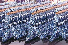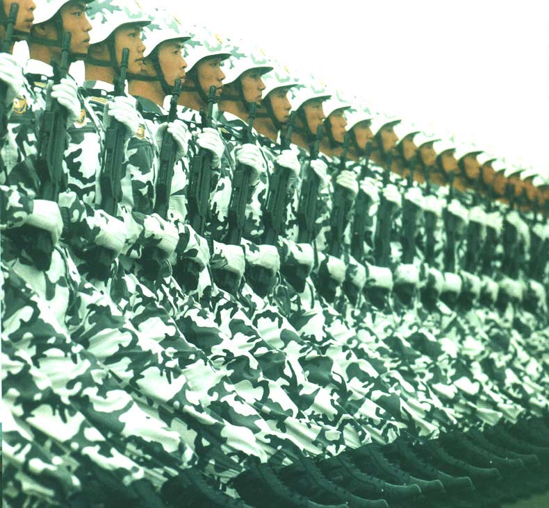 50年国庆盛典,参加首都阅兵的我军英雄部队以强大的阵容,雄伟的气势,精良的装备,高昂士气,向世界展示了新时期我军革命化、现代化、正规化建设的巨大成就,展示了我军威武之师、胜利之师的崭新精神风貌。