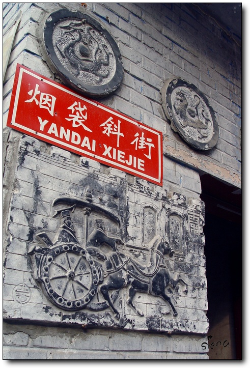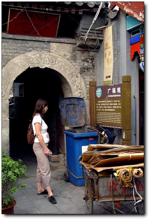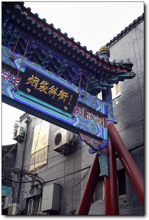 走着走着就经过一处古迹,开始时还没留意,以为是店家装修成仿旧样式...好象批评不到那些杂物脏物,第一次来烟袋斜街,我就接受它这种七拼八凑的样子了