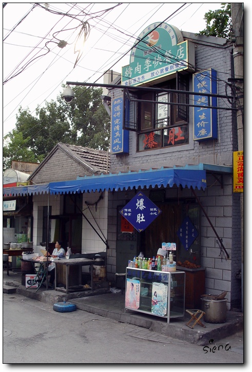 上张就是是在这个小楼的二楼窗口拍的,尝了尝他们的豆汁/焦圈/羊杂汤和爆肚,味道还不错,除了有点咸