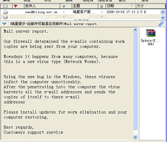 收到这类邮件的朋友,一定小心,不要运行。 运行后,出现数个可疑进程,并试图修改注册表,在windows目录中生成msupdtwiz.exe等四个文件,在system32目录中生成大约六七个文件,看文件的创建日期可以确定。