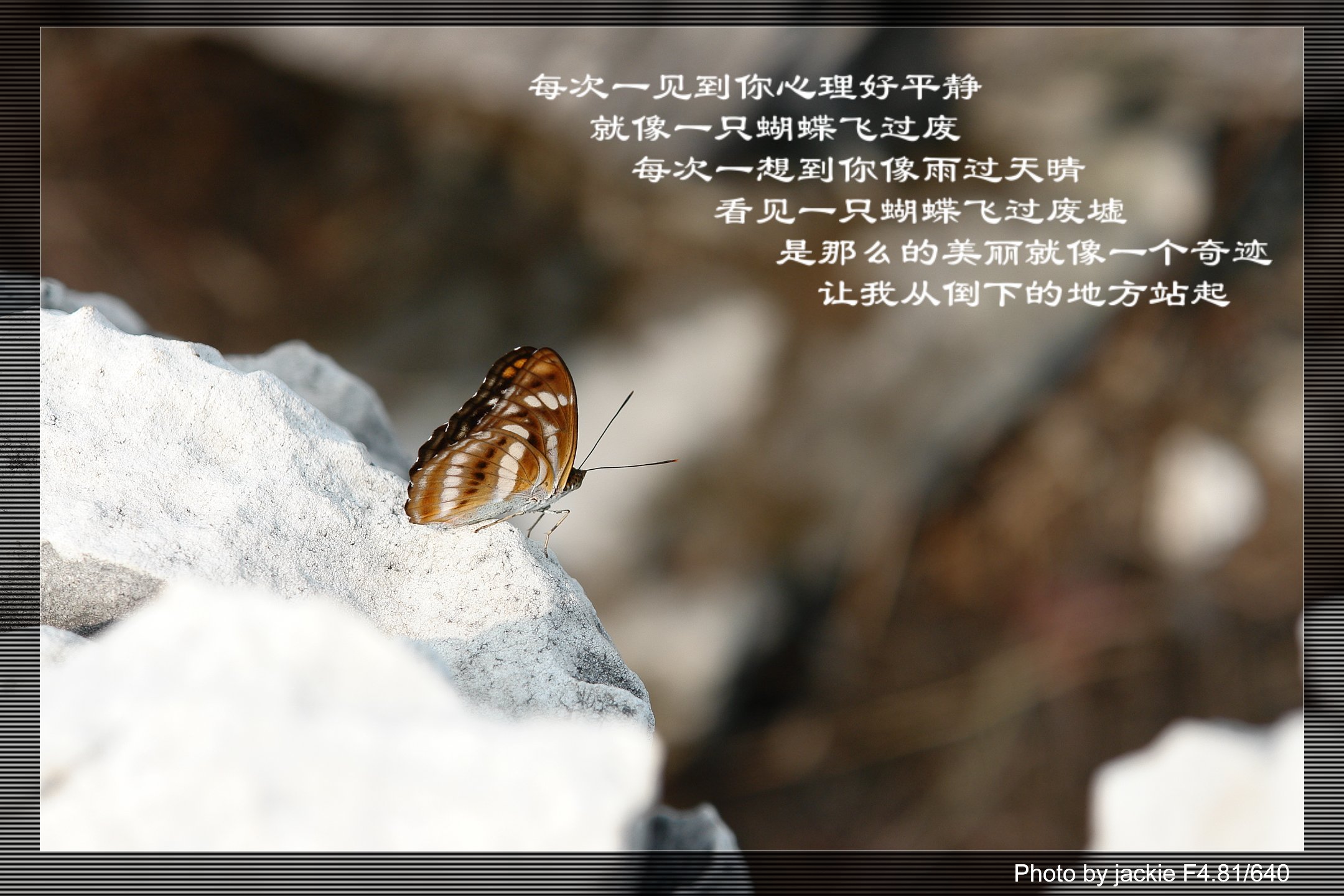 片子上配的文字很让人心动,这样的字,要是能配上一只更绚丽一点的蝴蝶就好了