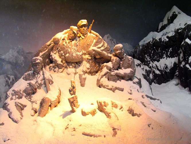 雪山的冰雪冻住了红军战士的身体,却冻不住战士革命的意志!