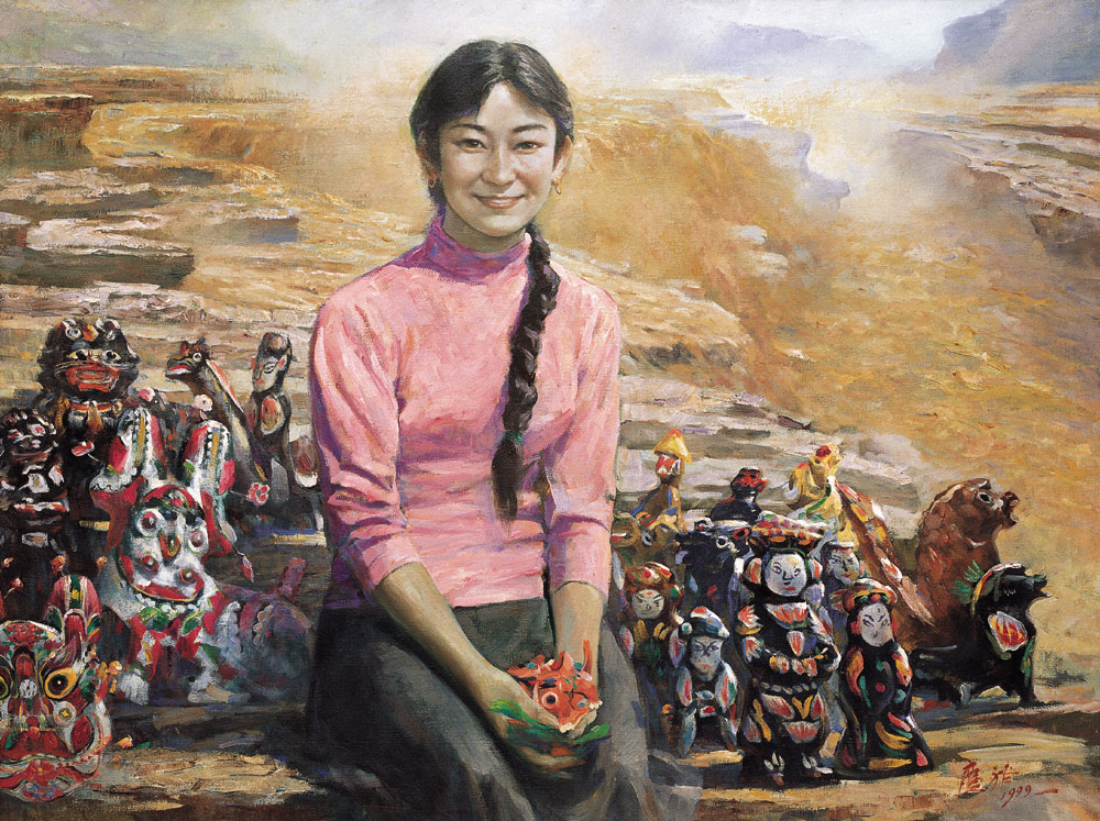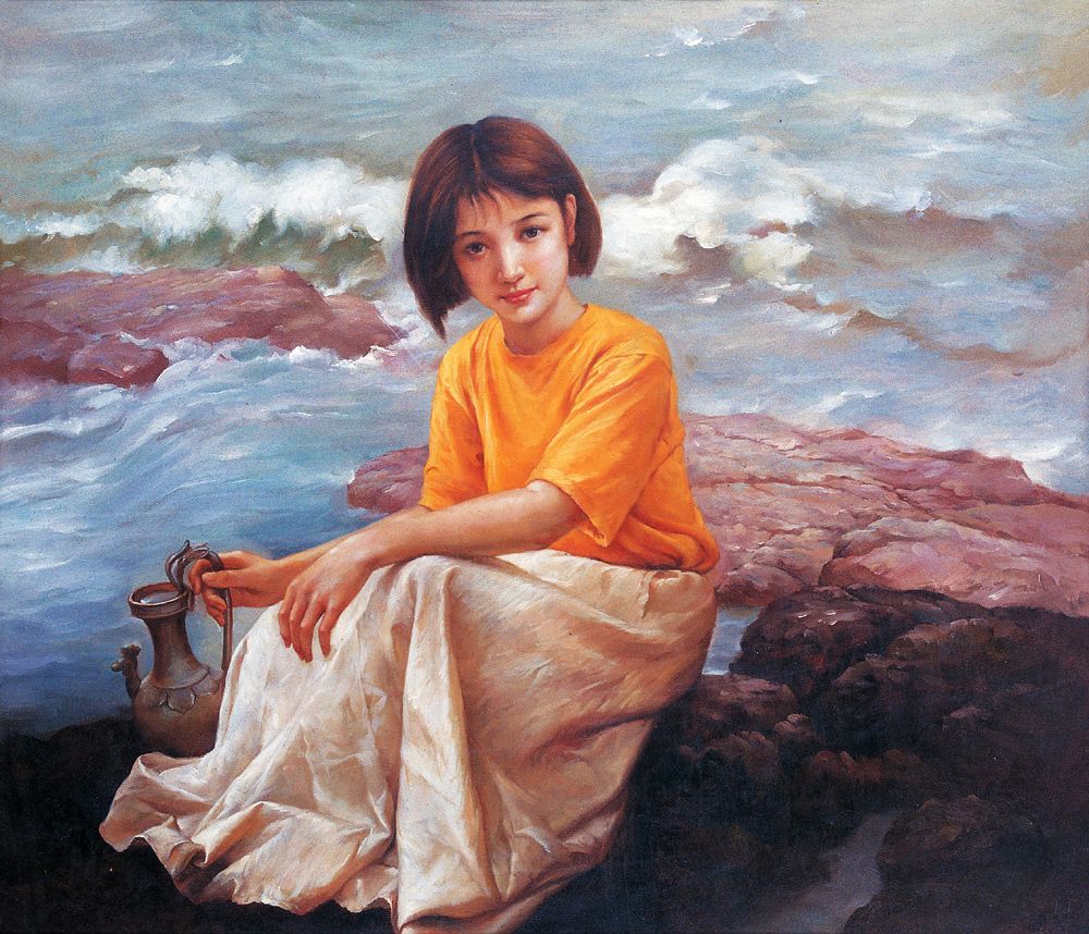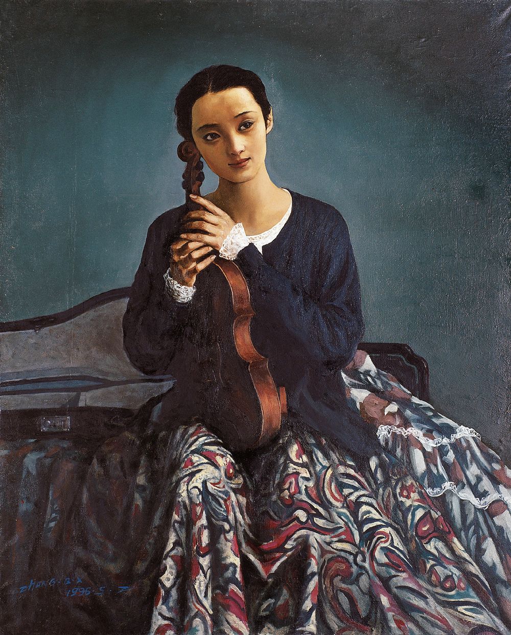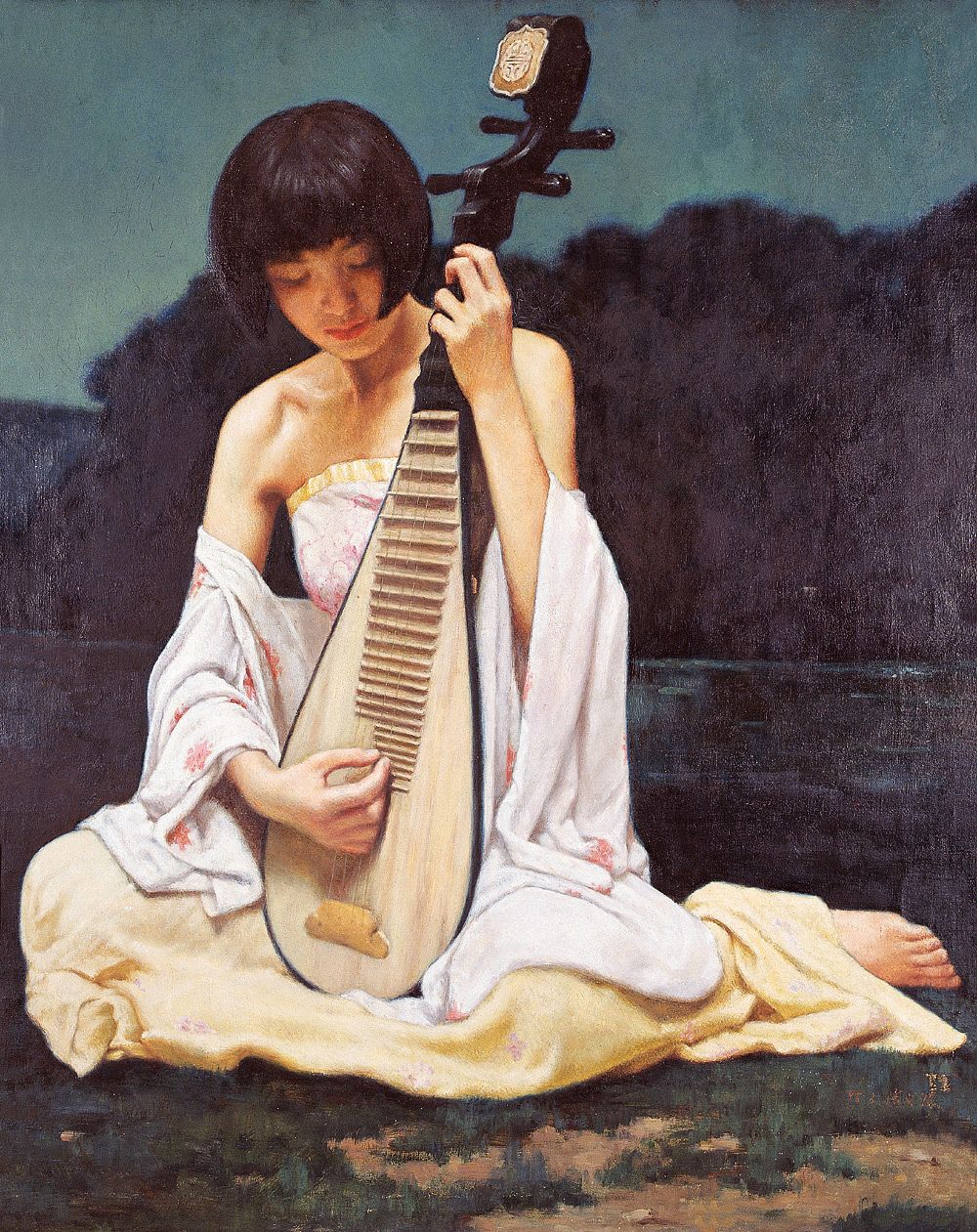 陈逸飞 1988年作 弹奏著曼陀铃的姑娘