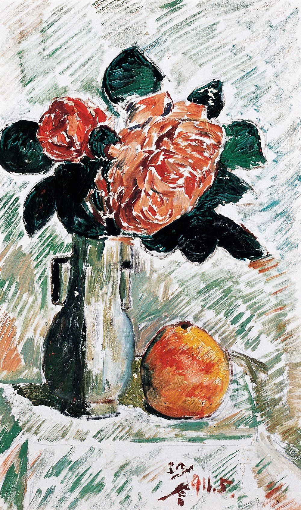 沙耆 1994年作 瓶中花与水果