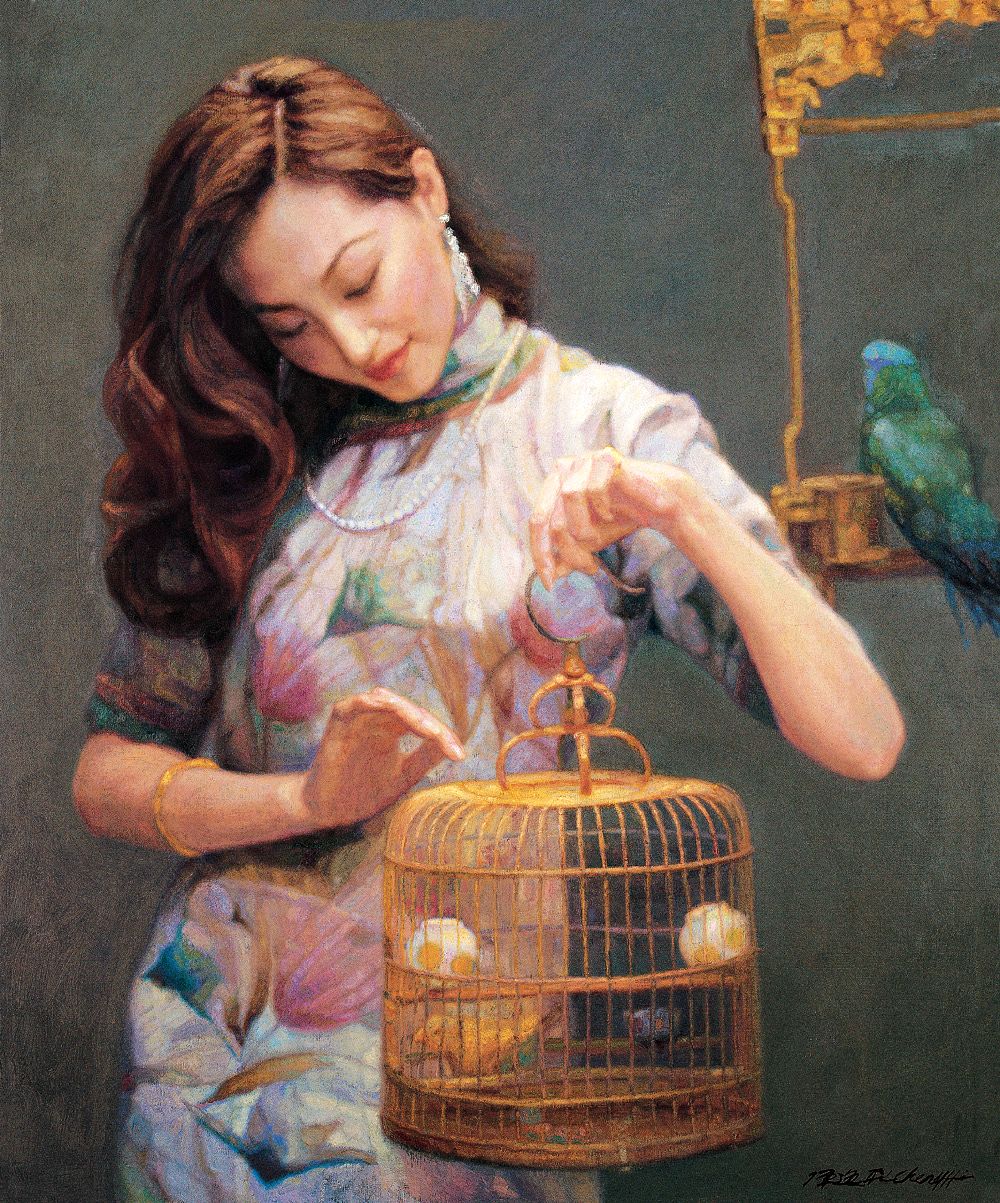 陈逸飞 1998年作 玫瑰与展翅的鸟·娟娟