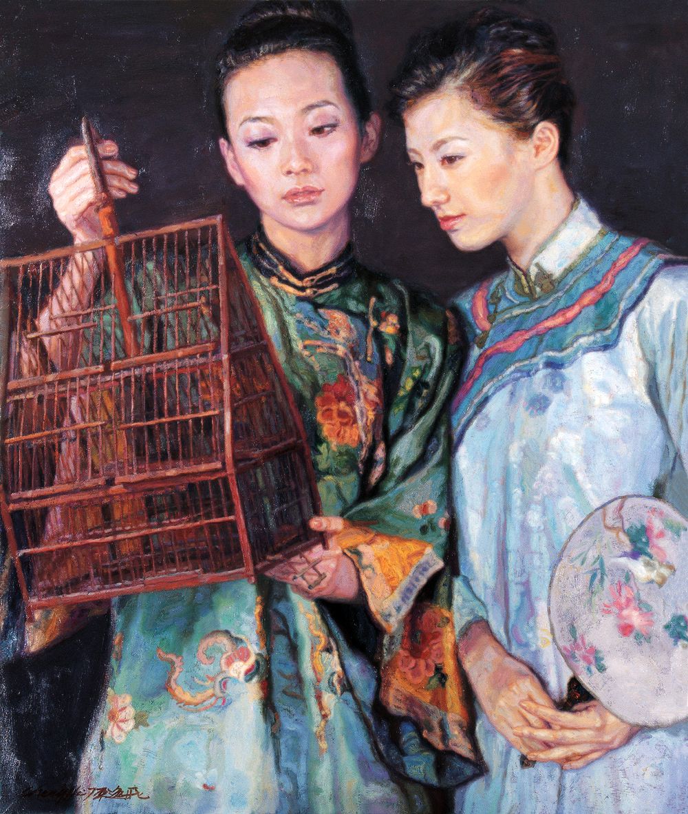 陈逸飞 执扇双美